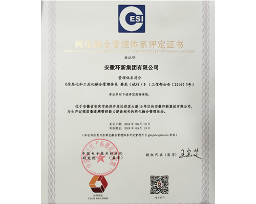 两化融合管理体系评定证书