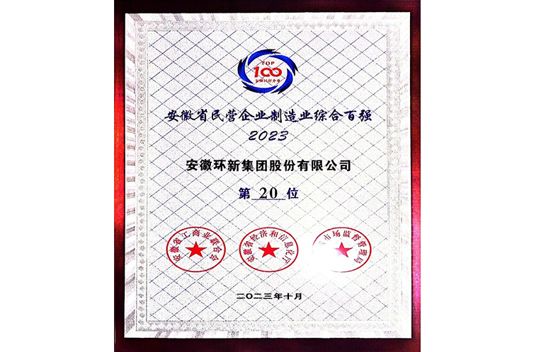 2023安徽省民营企业制造业综合百强第20位